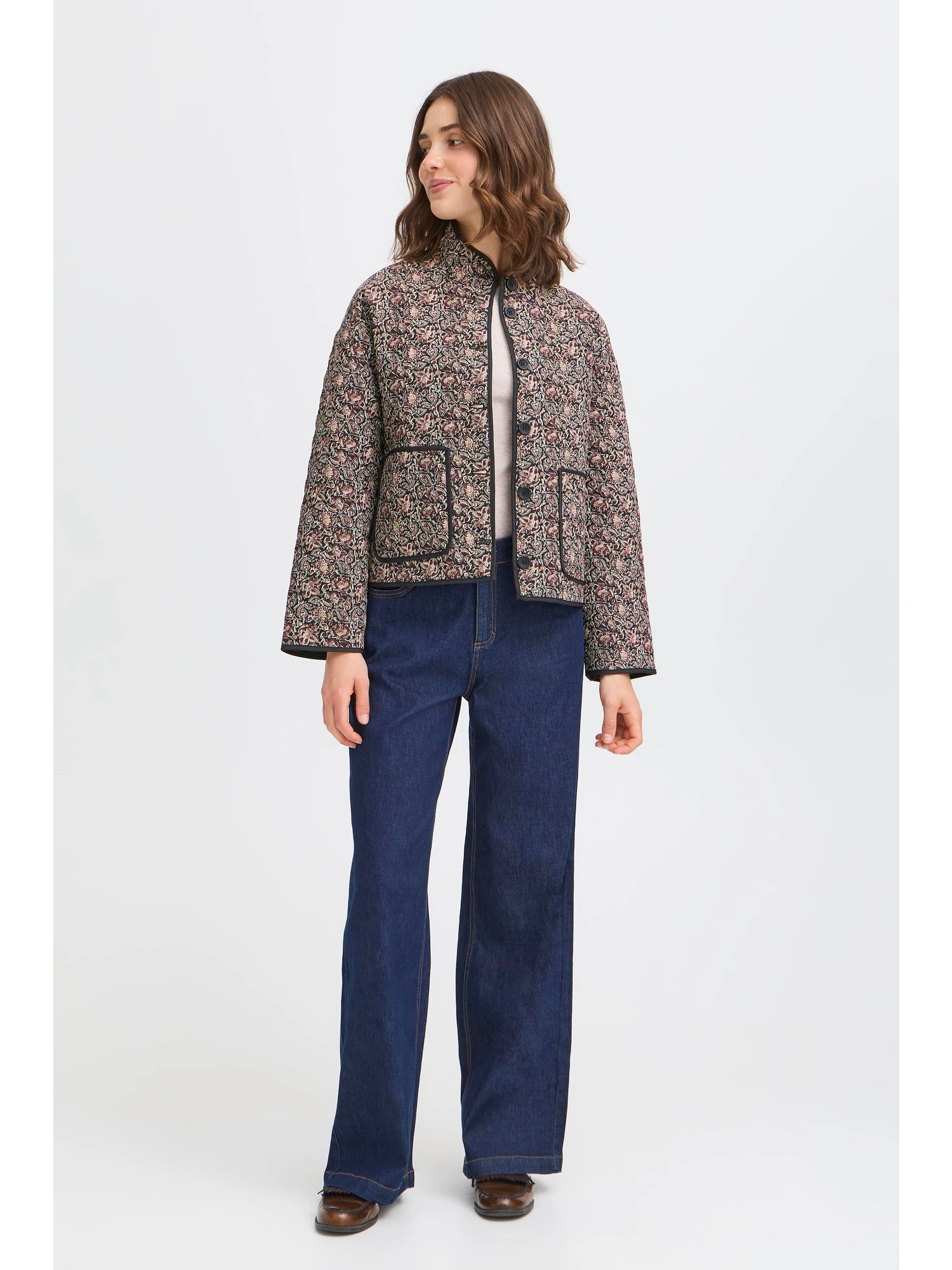 Fransa FRCLAUDINE JA 1 er en jakke i sort med et enkelt og grafisk udtryk uden paisleymønster. Den rene overflade og den afdæmpede farve gør modellen nem at kombinere i hverdagsgarderoben, hvor et neutralt yderlag prioriteres.