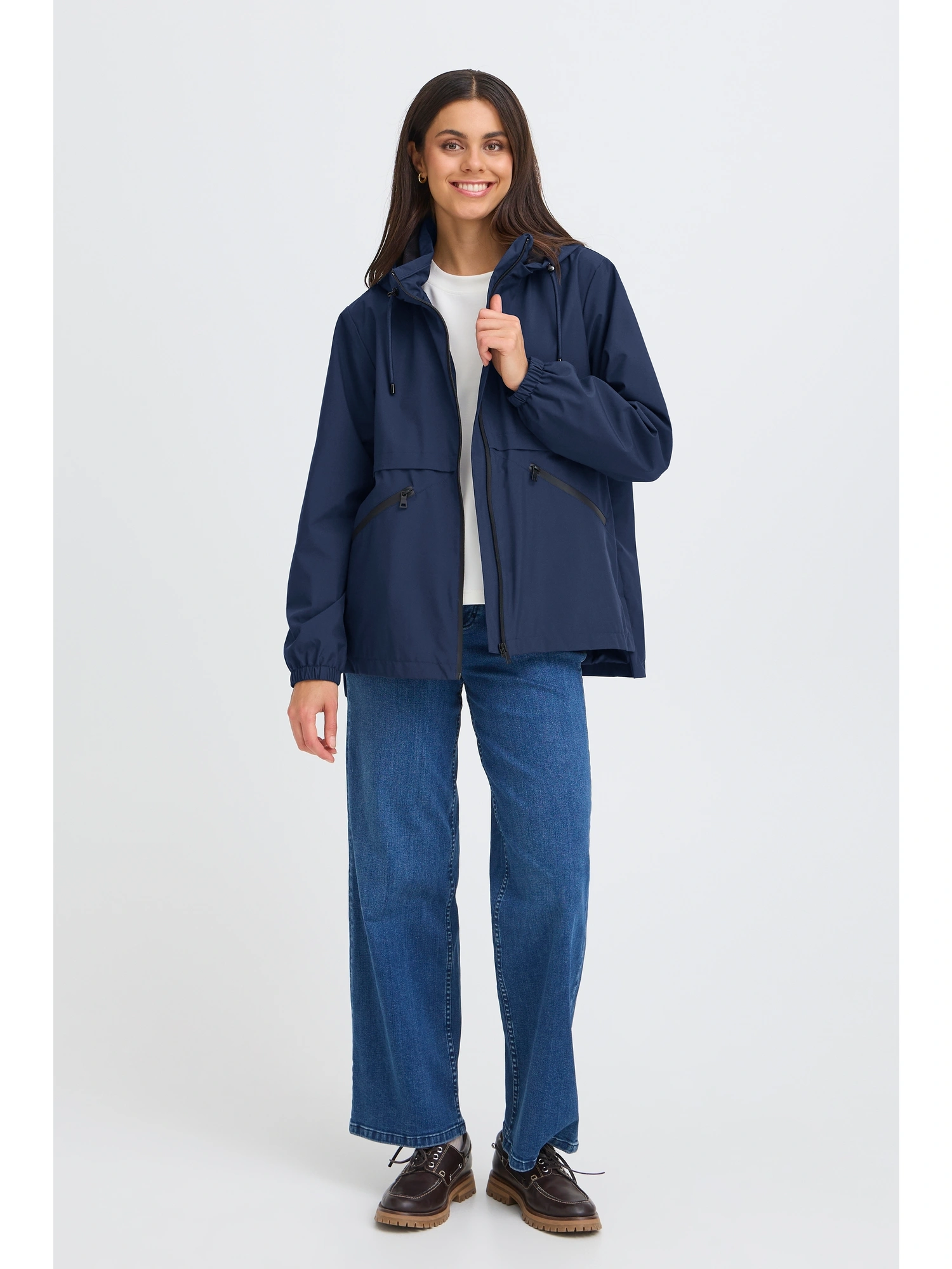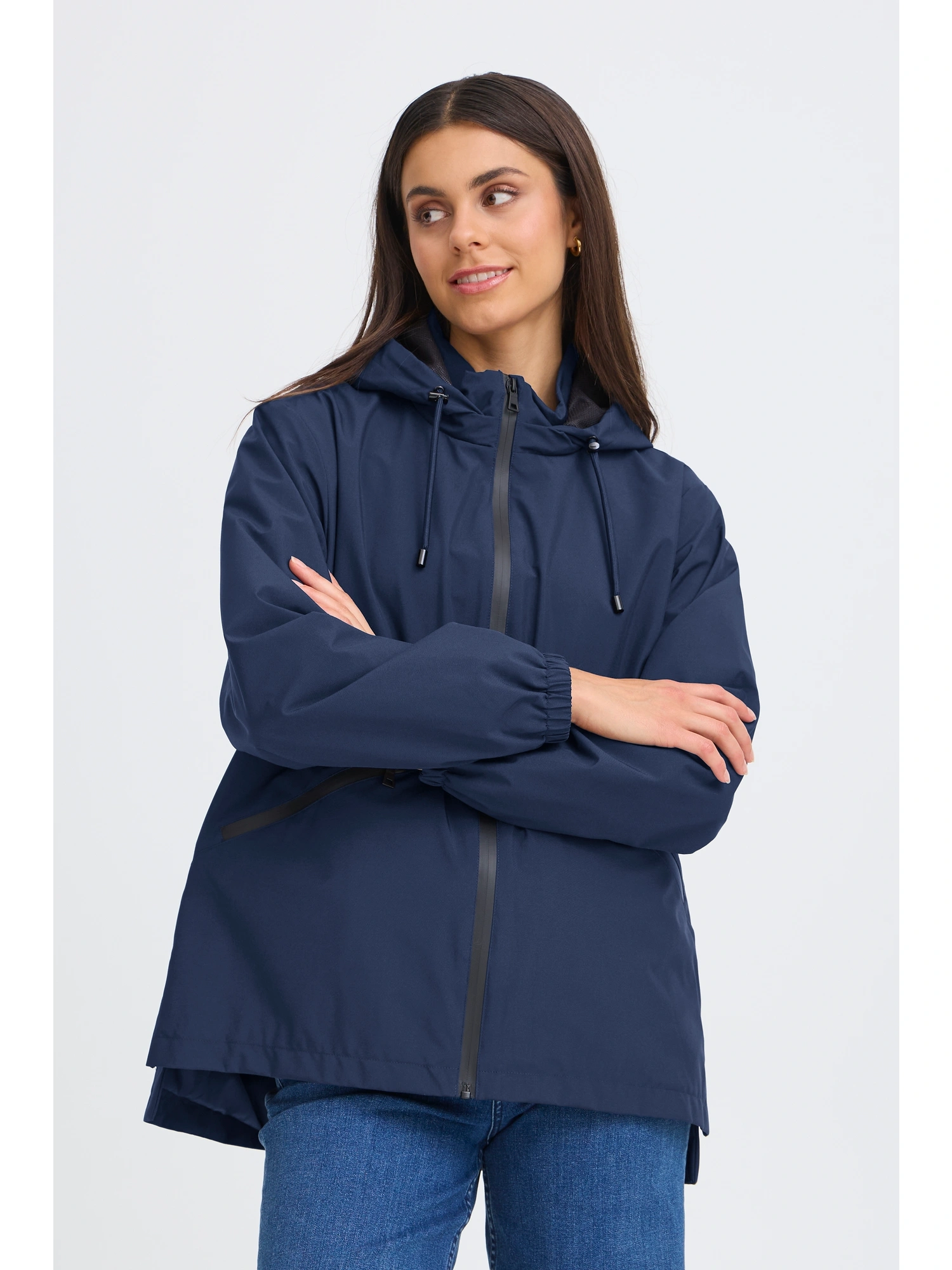 FRPAFASA JA 4 Jakke Navy Blazer er en funktionel jakke i en klassisk mørkeblå nuance. Modellen har et enkelt og praktisk design, der gør den velegnet til hverdagsbrug i skiftende vejr. Den længere længde og den tidløse farve giver et alsidigt udtryk, som let kan kombineres med resten af garderoben.