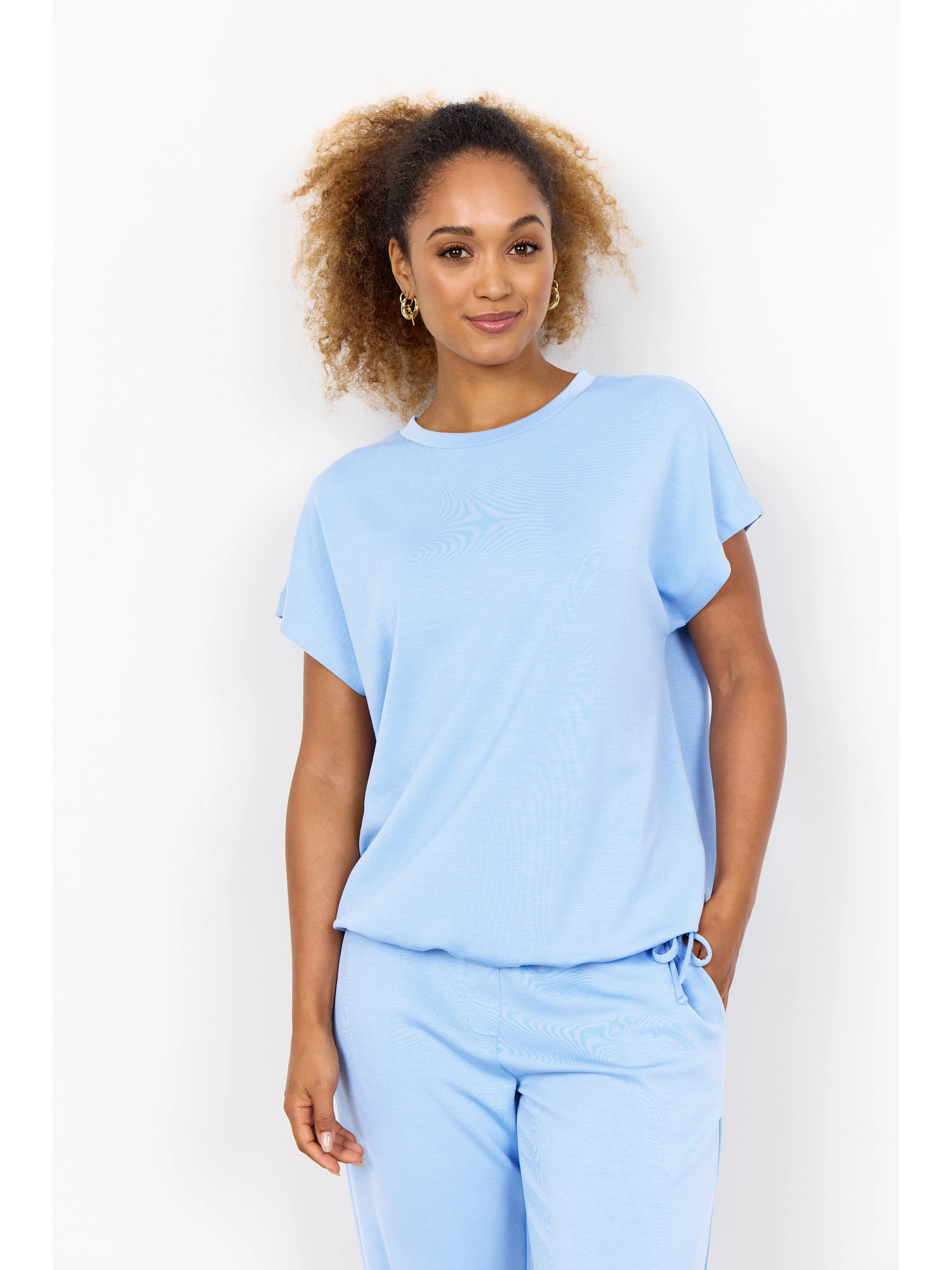 SC-BANU 169 er en afslappet og komfortabel T-shirt fra Soyaconcept, designet til hverdagsbrug med fokus på blødhed og bevægelsesfrihed. Modellen er fremstillet i en blød materialeblanding af modal, polyester og elastan, som giver en behagelig fornemmelse mod huden.