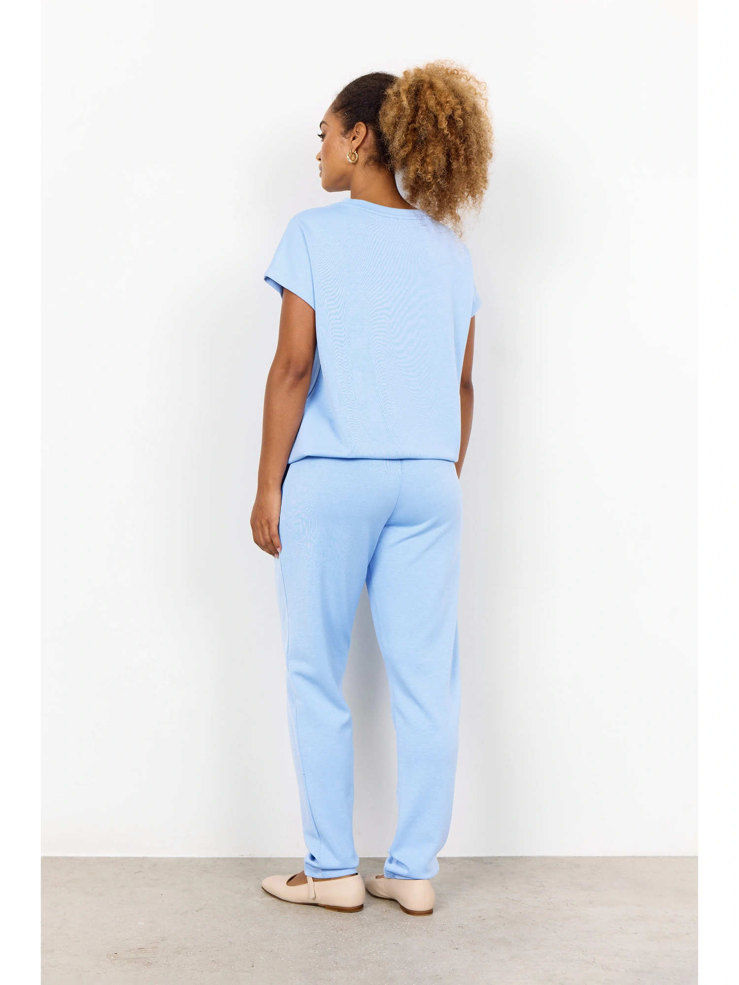 SC-BANU 169 føles let og blød at have på. Materialet falder naturligt, og elastanindholdet sikrer en smidig pasform, der følger kroppens bevægelser uden at stramme.
