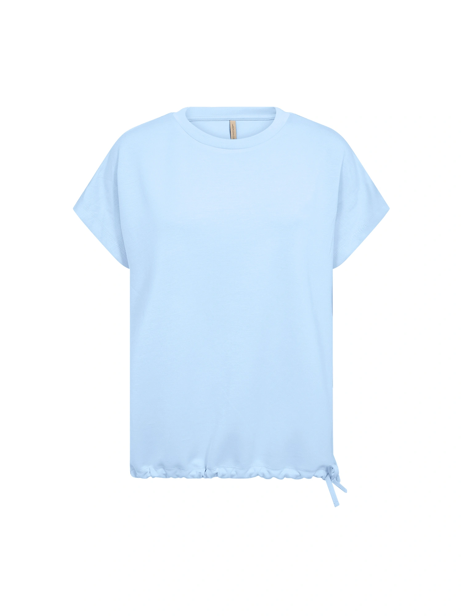 T-shirten har en klassisk rund halsudskæring og korte ærmer, hvilket giver et enkelt og anvendeligt udtryk. Den løse pasform bidrager til høj komfort, mens den diskrete detalje forneden tilfører et let visuelt element til det rene design.