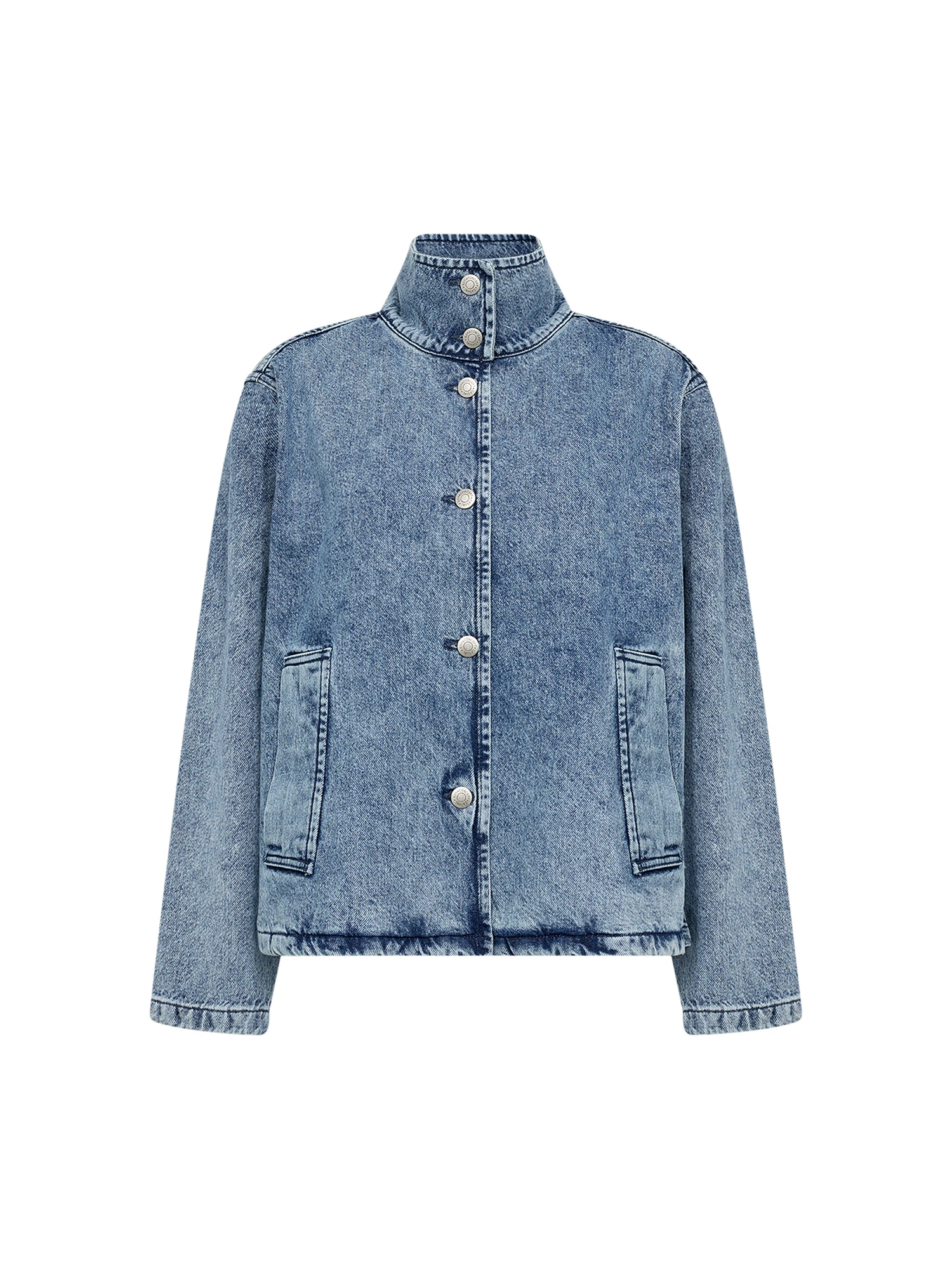 SC-DOLORES 7 er en kort jakke med et råt og tidløst udtryk. Modellen er fremstillet i en robust bomuldskvalitet med genanvendt bomuld og har et enkelt design med høj krave, knaplukning og to praktiske frontlommer. Den strukturerede overflade giver jakken et denimlignende præg, som gør den nem at bruge i hverdagen.