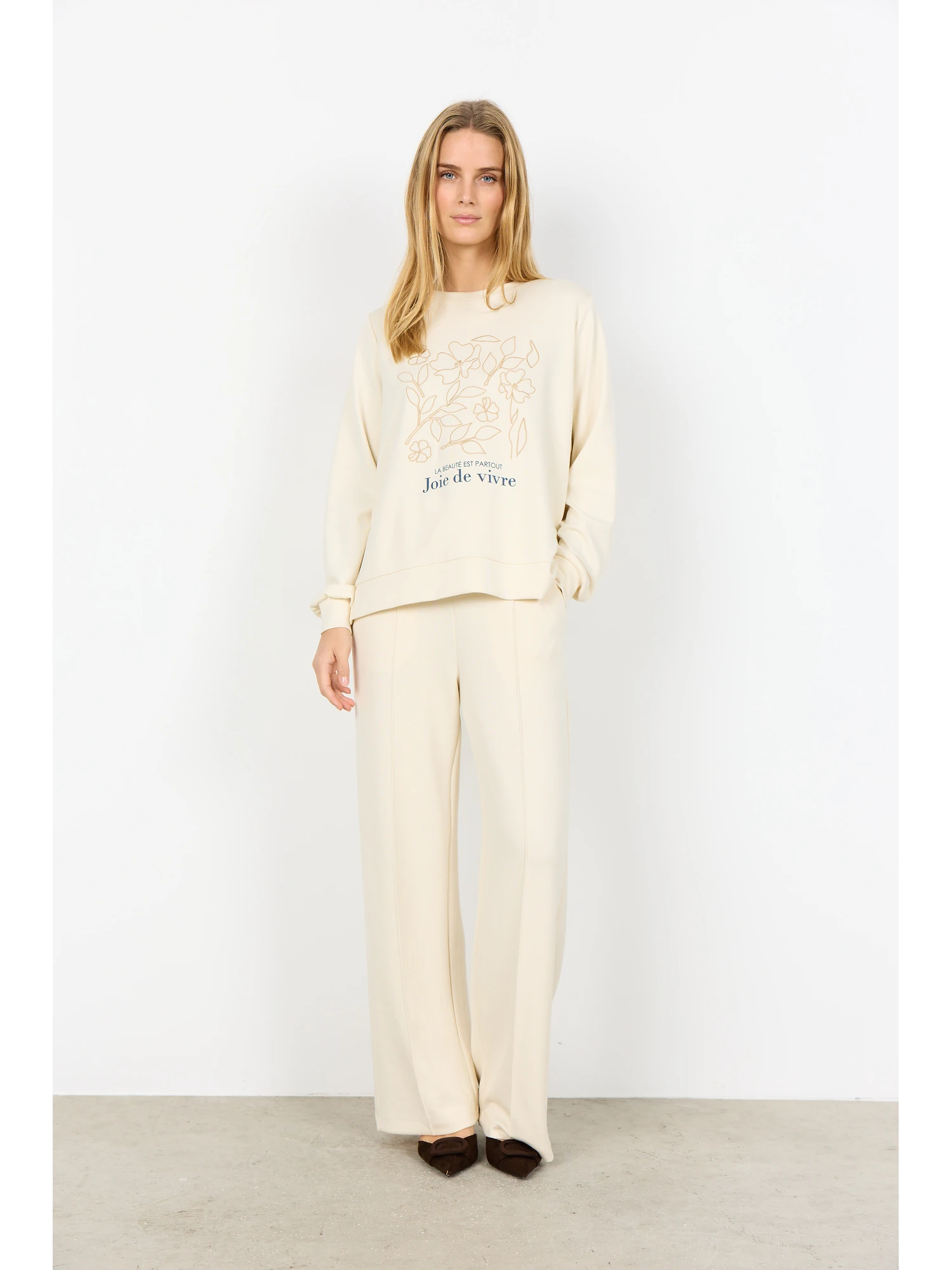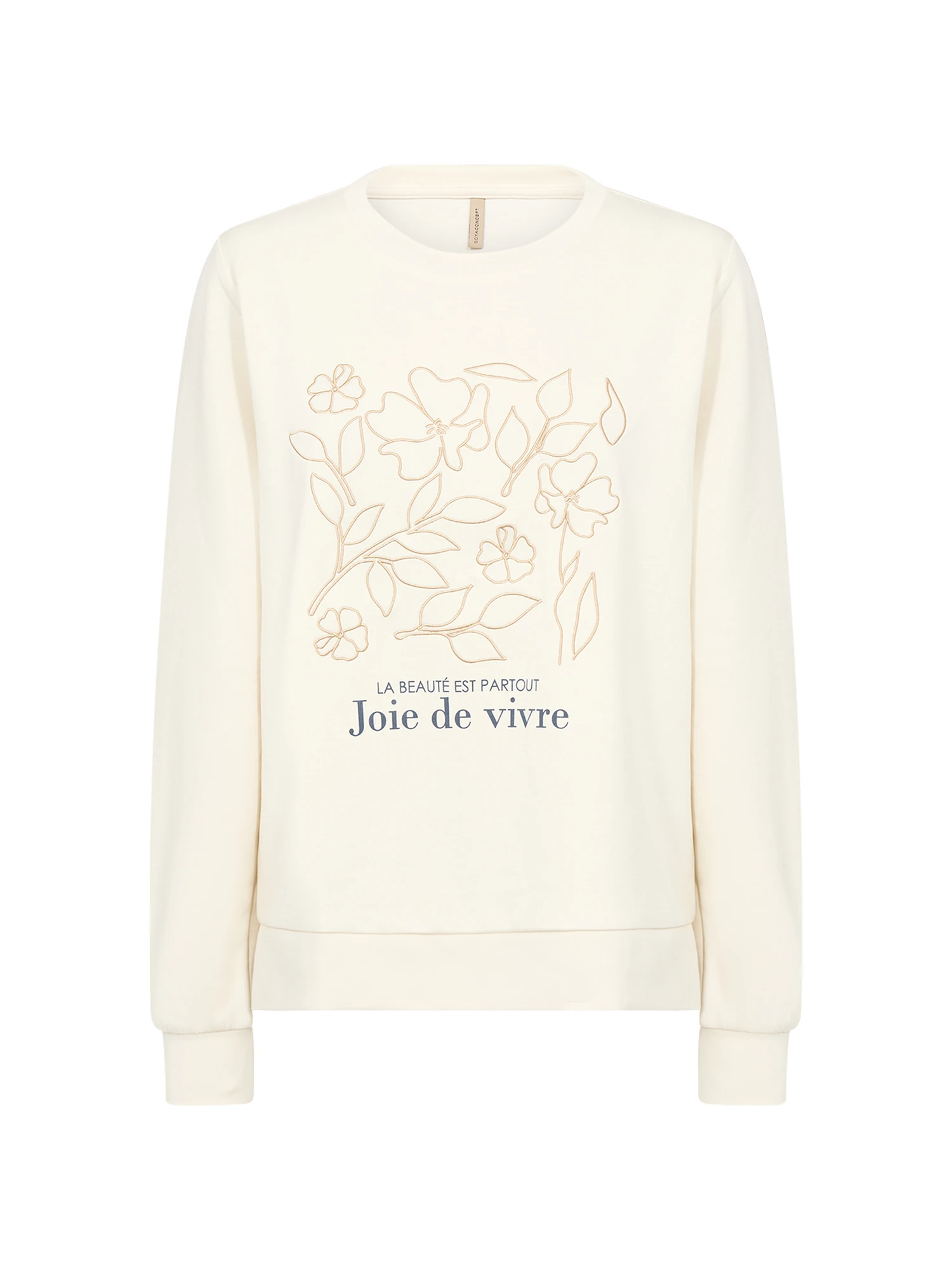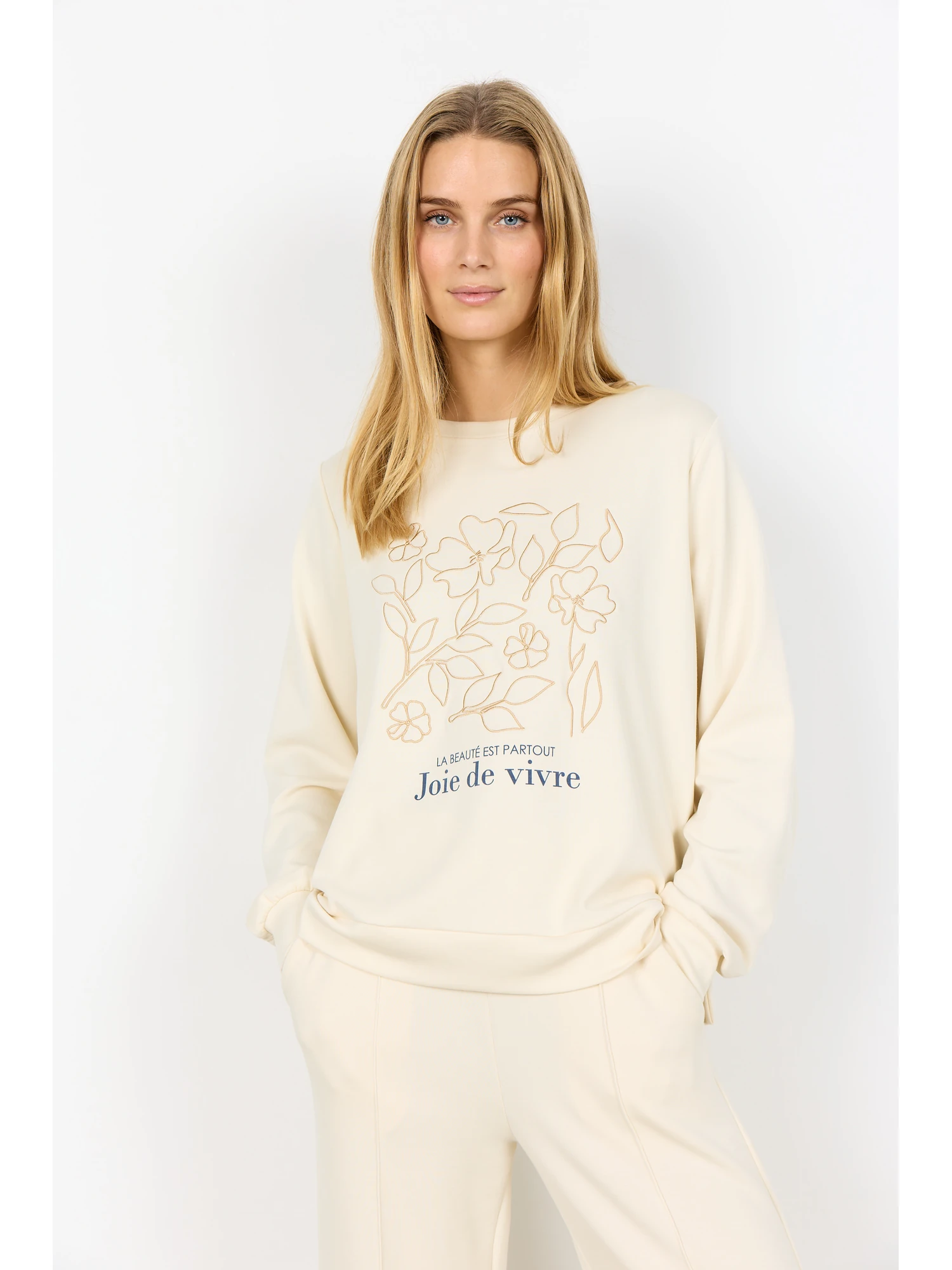 SC-BANU 287 er en sweatshirt med et afslappet og feminint udtryk. Modellen er designet med rund hals, manchetter og et dekorativt blomsterprint med tekst på forsiden, som tilfører et roligt visuelt fokus uden at dominere helheden. Udtrykket er afbalanceret og let at integrere i en hverdagsgarderobe.