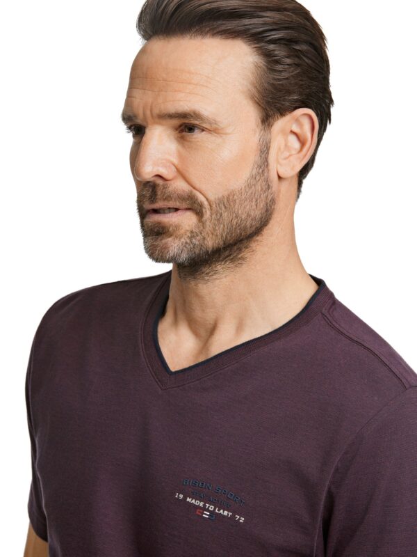 Bison Mini Striped V-neck tee 80-400106PLUS Burgundy