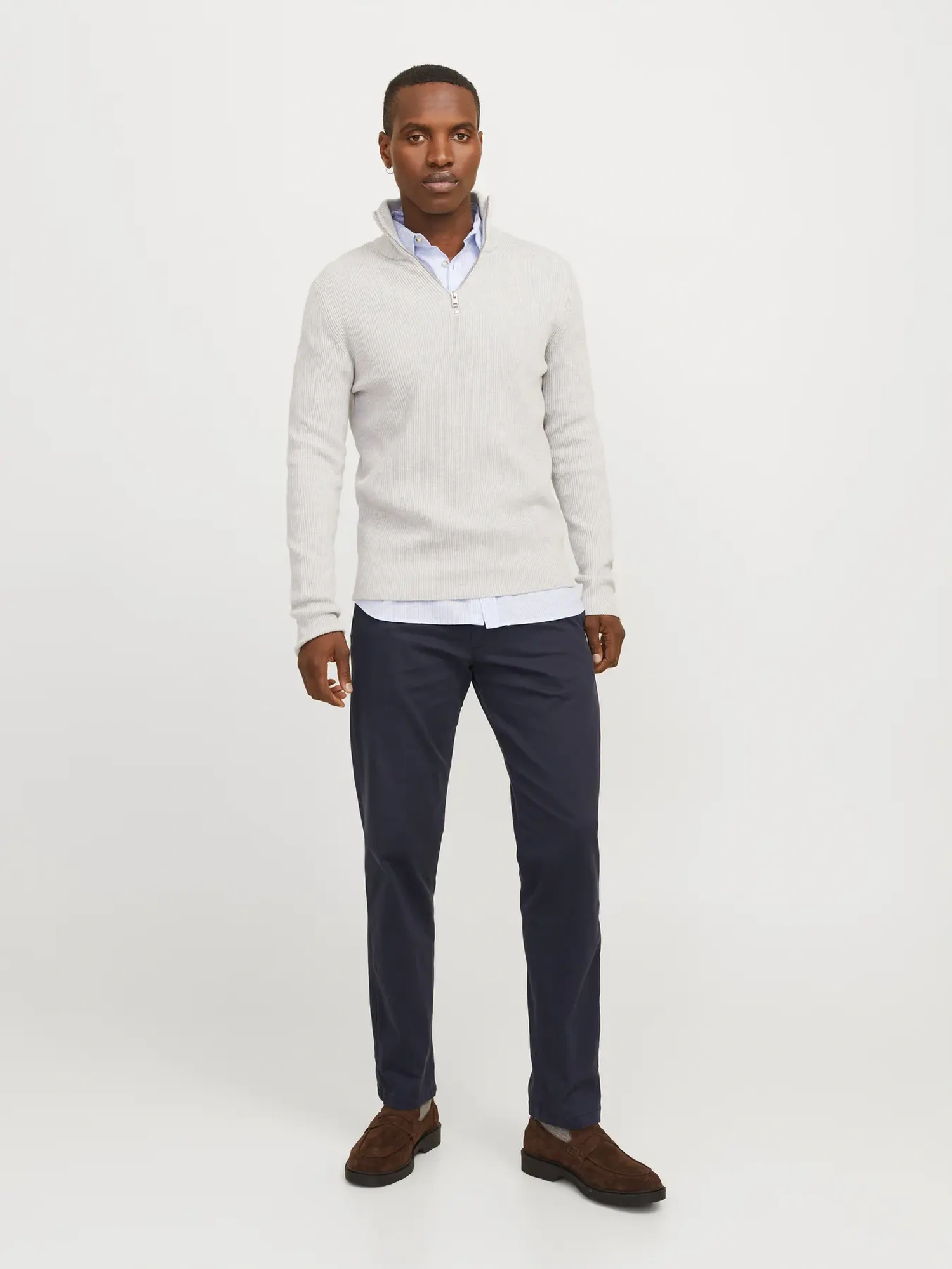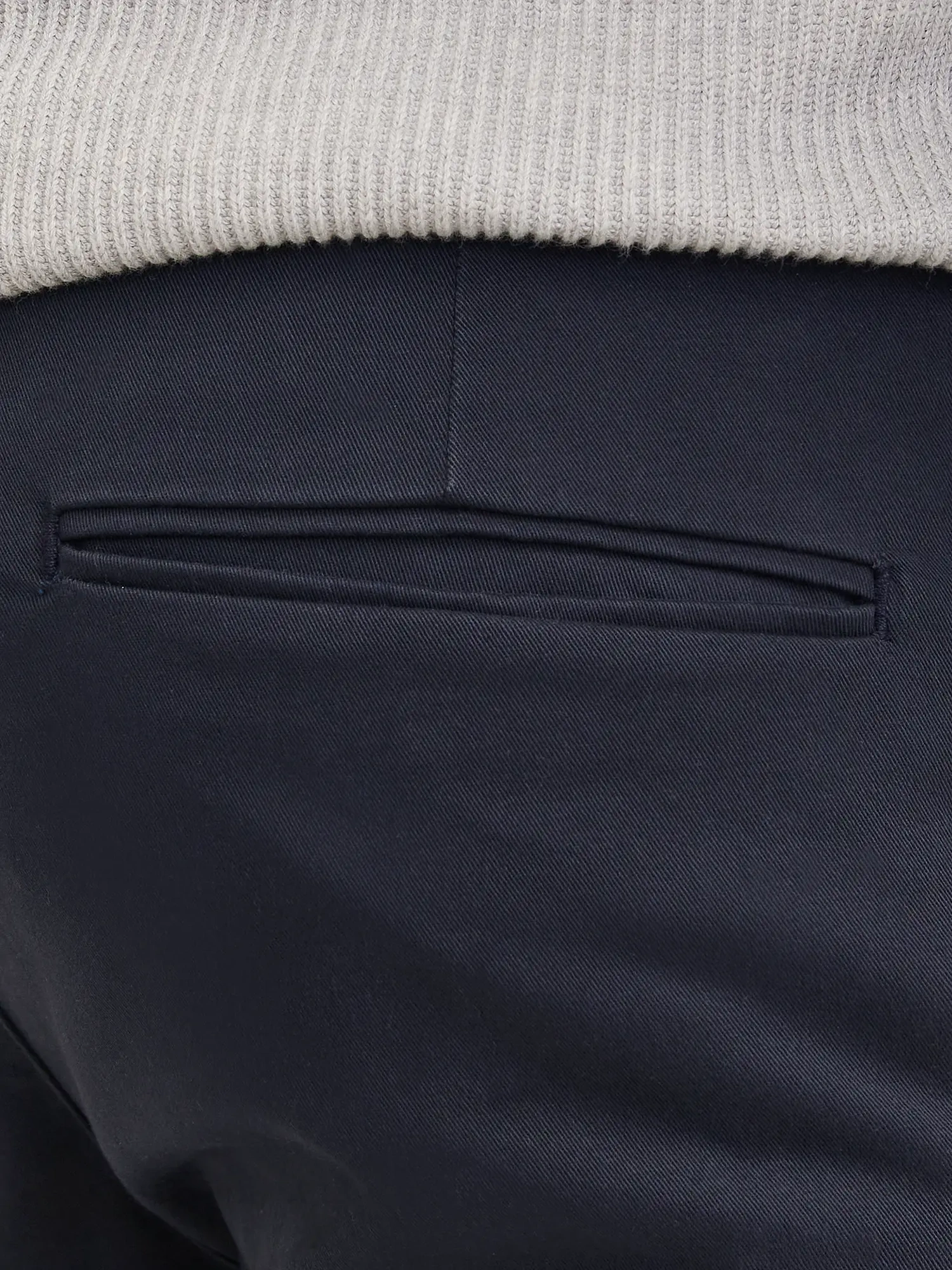Velegnet til både skjorte og strik i en mere formel sammenhæng eller med T-shirt og sneakers til en afslappet stil. Den mørkeblå farve fungerer godt sammen med brune sko, hvide skjorter og neutrale overdele.