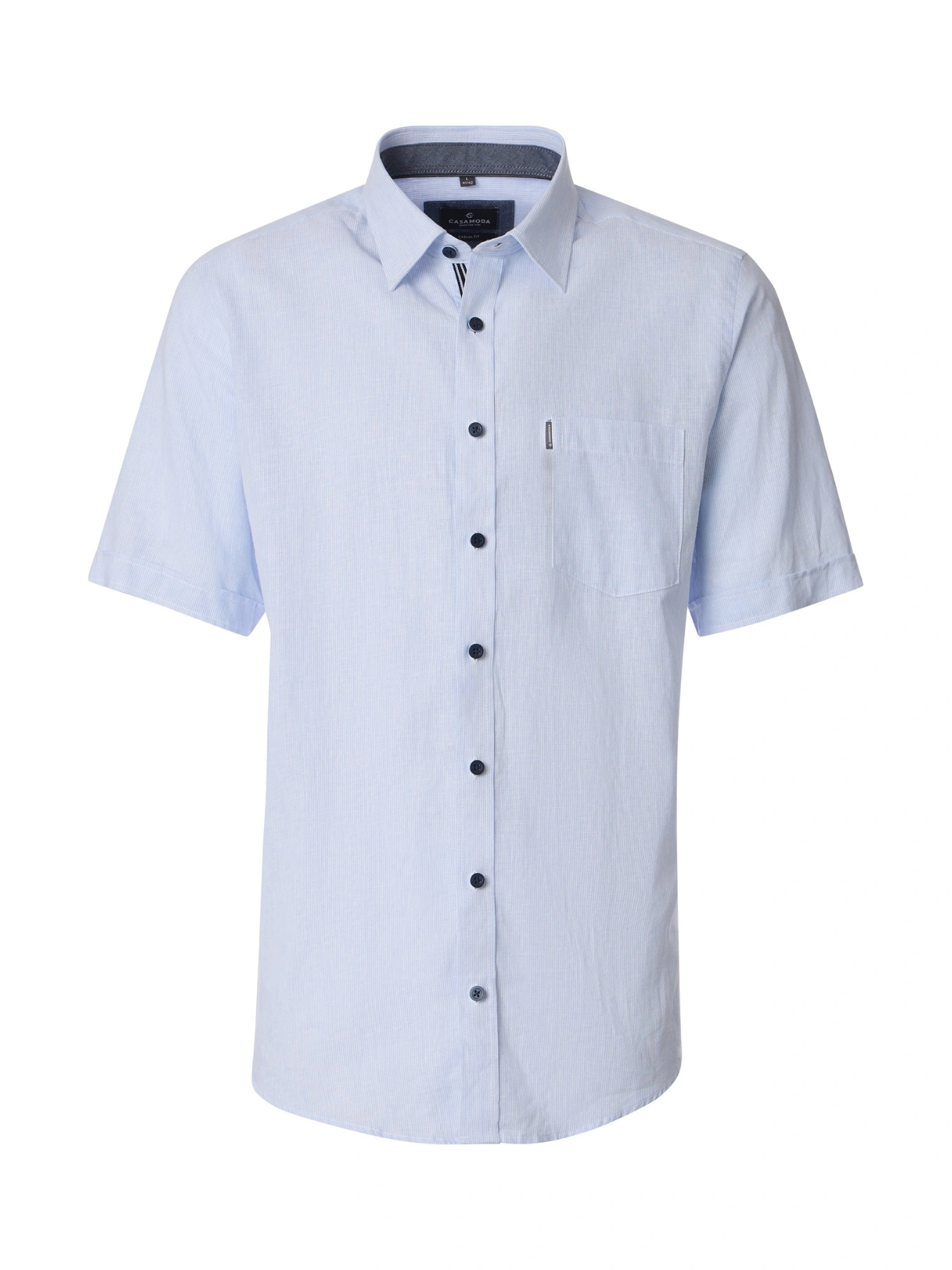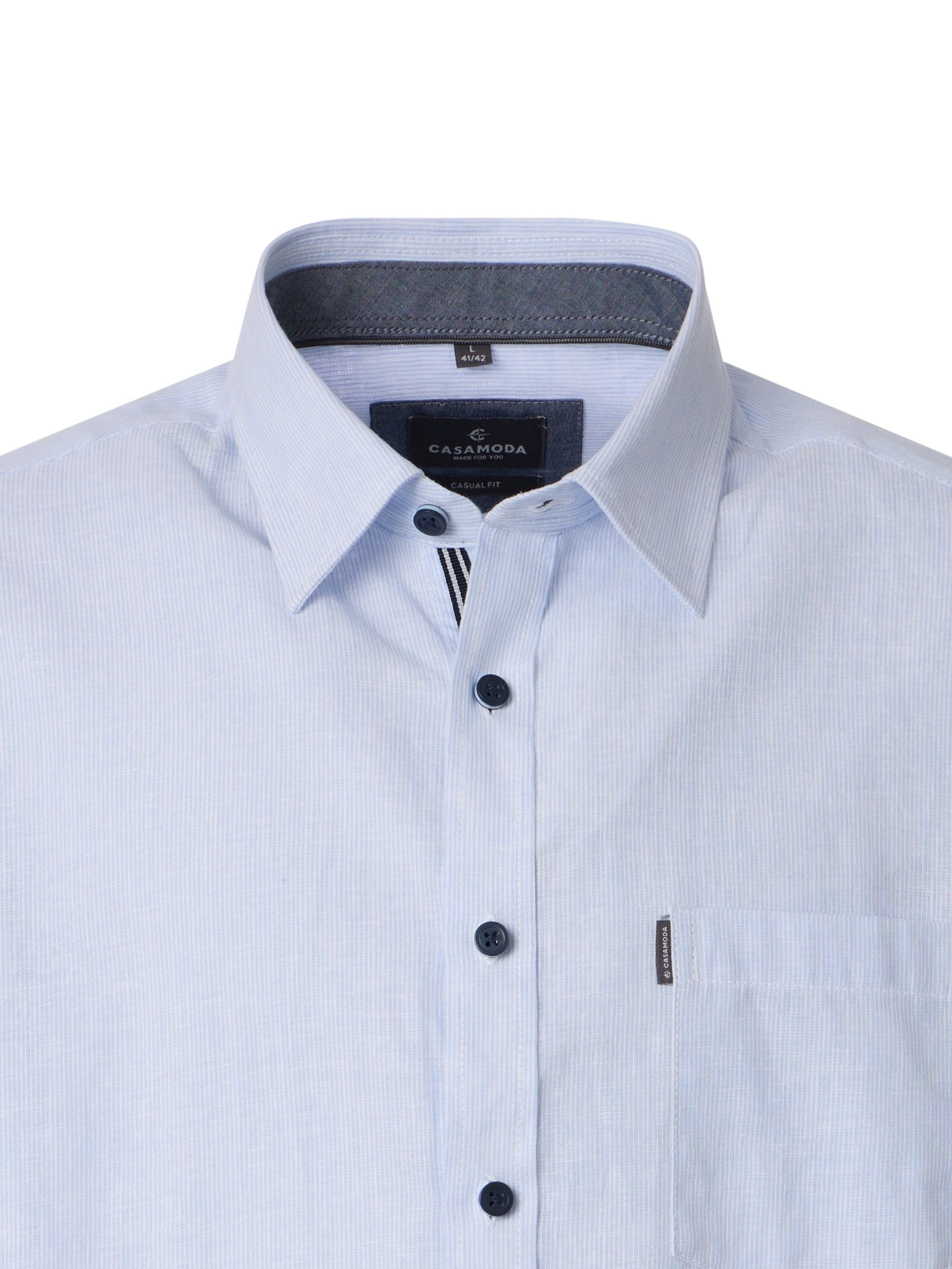 Denne Striped Casual Shirt fra CASAMODA er en kortærmet skjorte i regular fit fremstillet i en blanding af hør og bomuld. Den fungerer som en enkel og alsidig basis, der kan bruges både på arbejde og i fritiden.