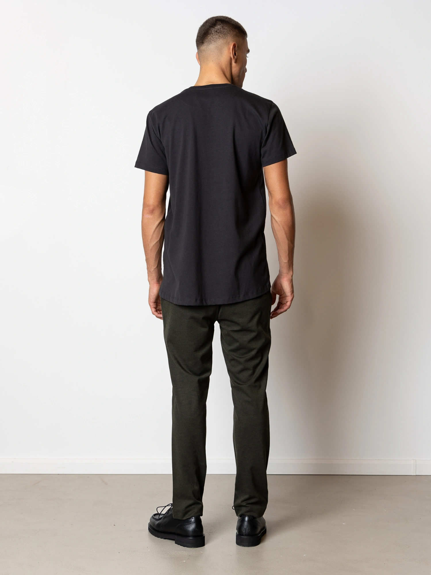 Regular fit er skåret med et lige snit, som falder naturligt langs kroppen uden at blive tætsiddende. Der er mere bredde ved bryst, talje og ærmer end på en slim fit, hvilket giver et mere afslappet udtryk og ekstra plads i bevægelse.