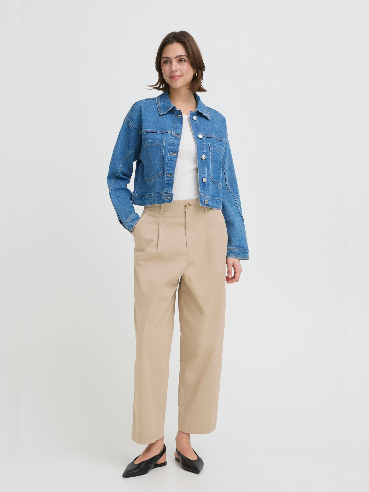 Kan styles med skjorte, T-shirt eller strik. Passer til både arbejde og hverdagsbrug sammen med sneakers, loafers eller støvler.