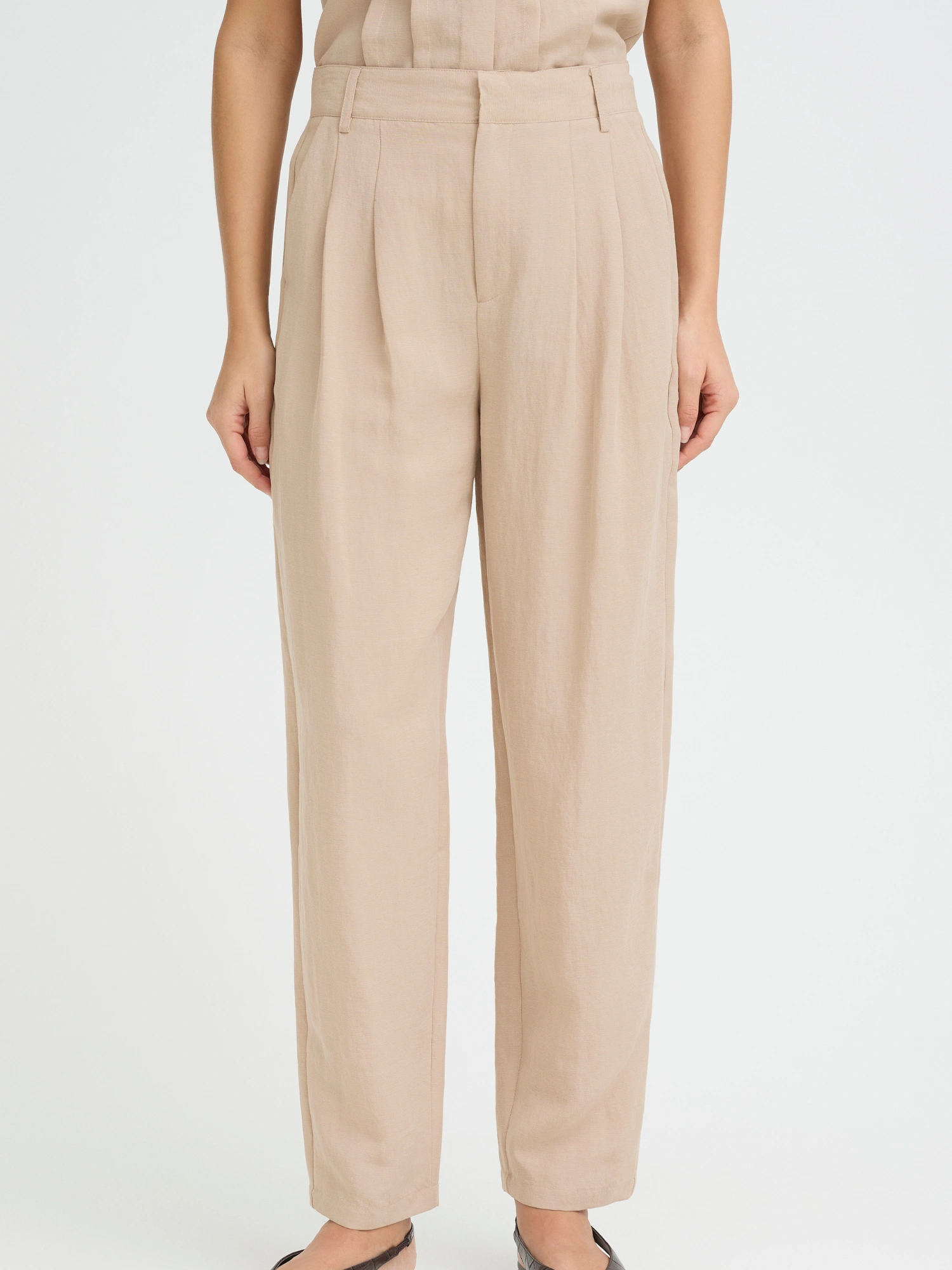 Denne FRADAH PA 1 Buks fra Fransa er et par bukser i regular fit fremstillet i lyocell, viskose, nylon og hør. Den fungerer som en enkel og alsidig model, der kan bruges både på arbejde og i fritiden.