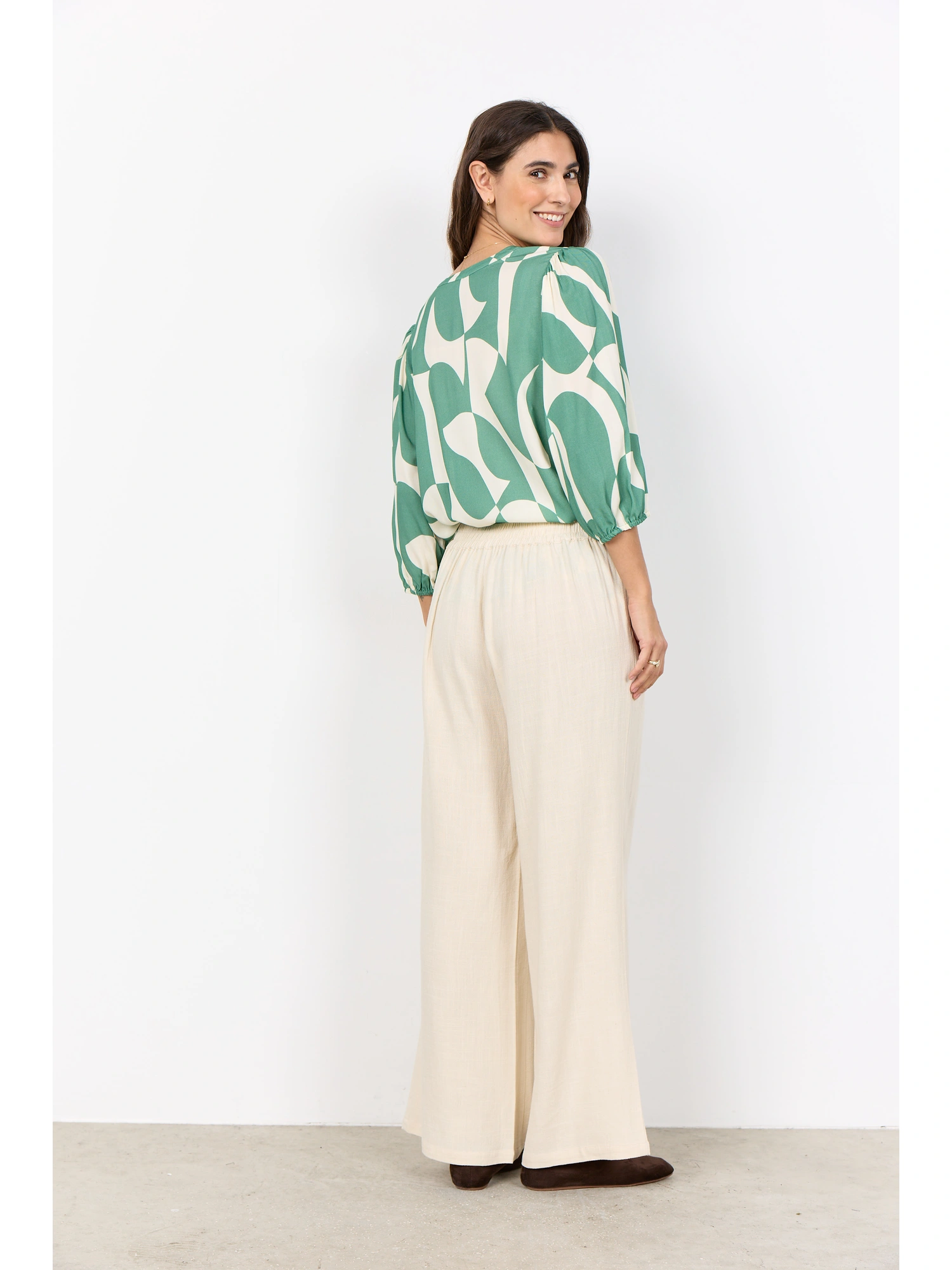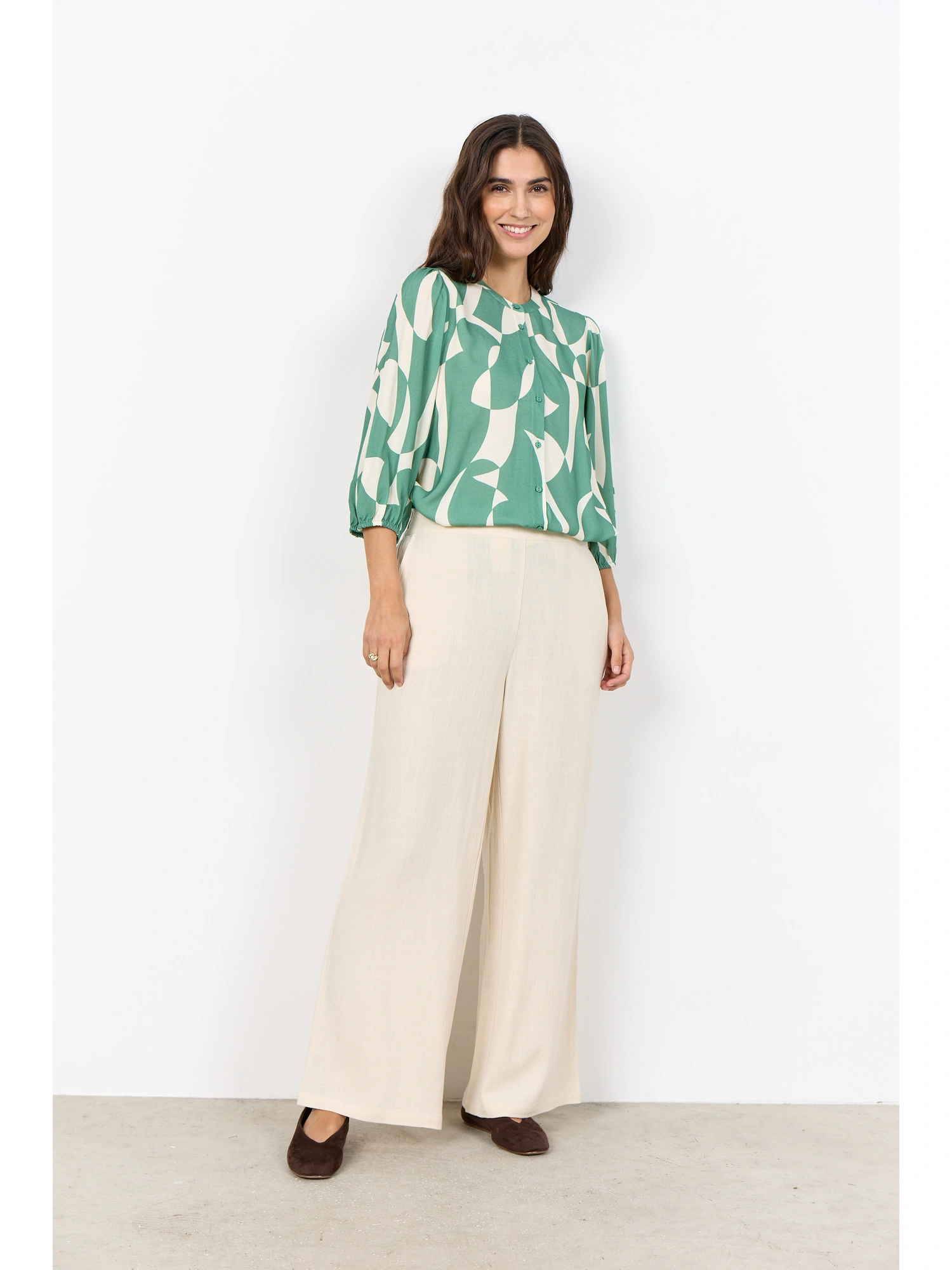 SC-CANNIE SOLID 2-B i Sand kan styles med en løs bluse for et afslappet look eller kombineres med en tætsiddende top for et mere elegant udtryk.