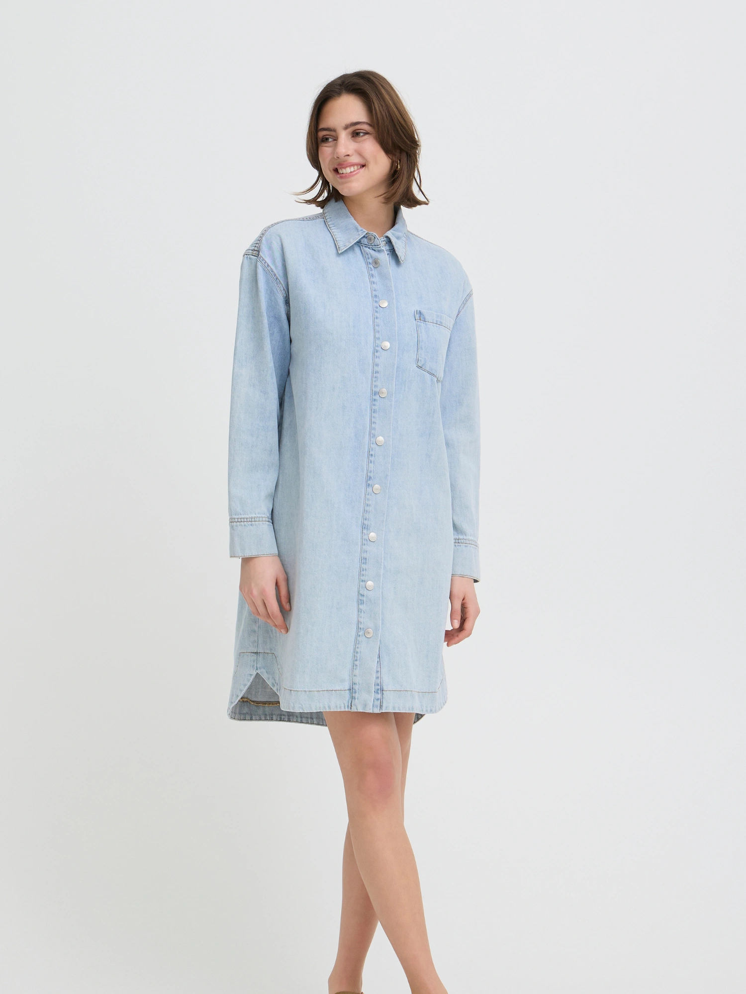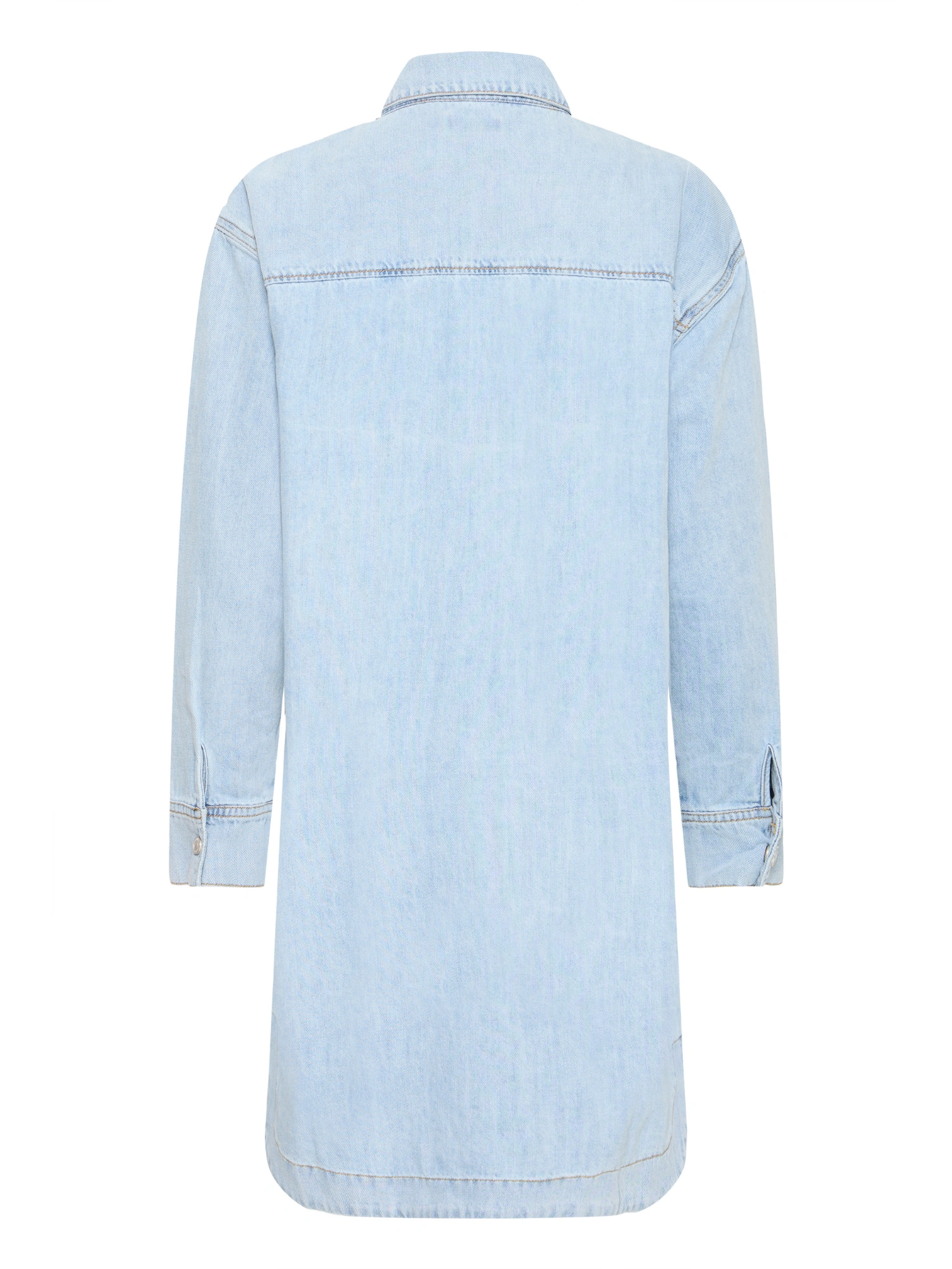Denne FRLISE DR 1 fra Fransa er en denim kjole i regular fit fremstillet i bomuld. Den fungerer som en enkel og alsidig basis, der kan bruges både på arbejde og i fritiden.