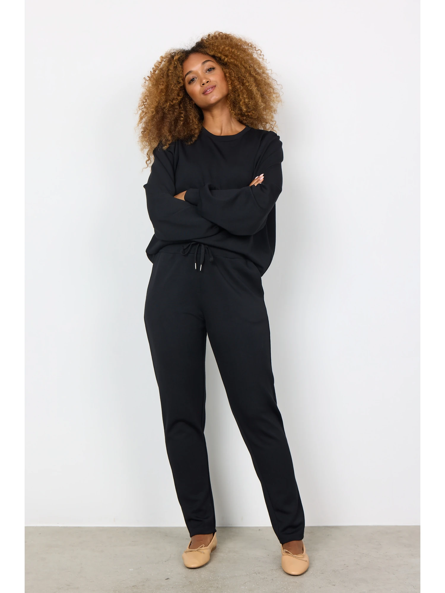 Bukserne kan nemt kombineres med matchende overdele for et sammenhængende og afslappet hjemme-look.
