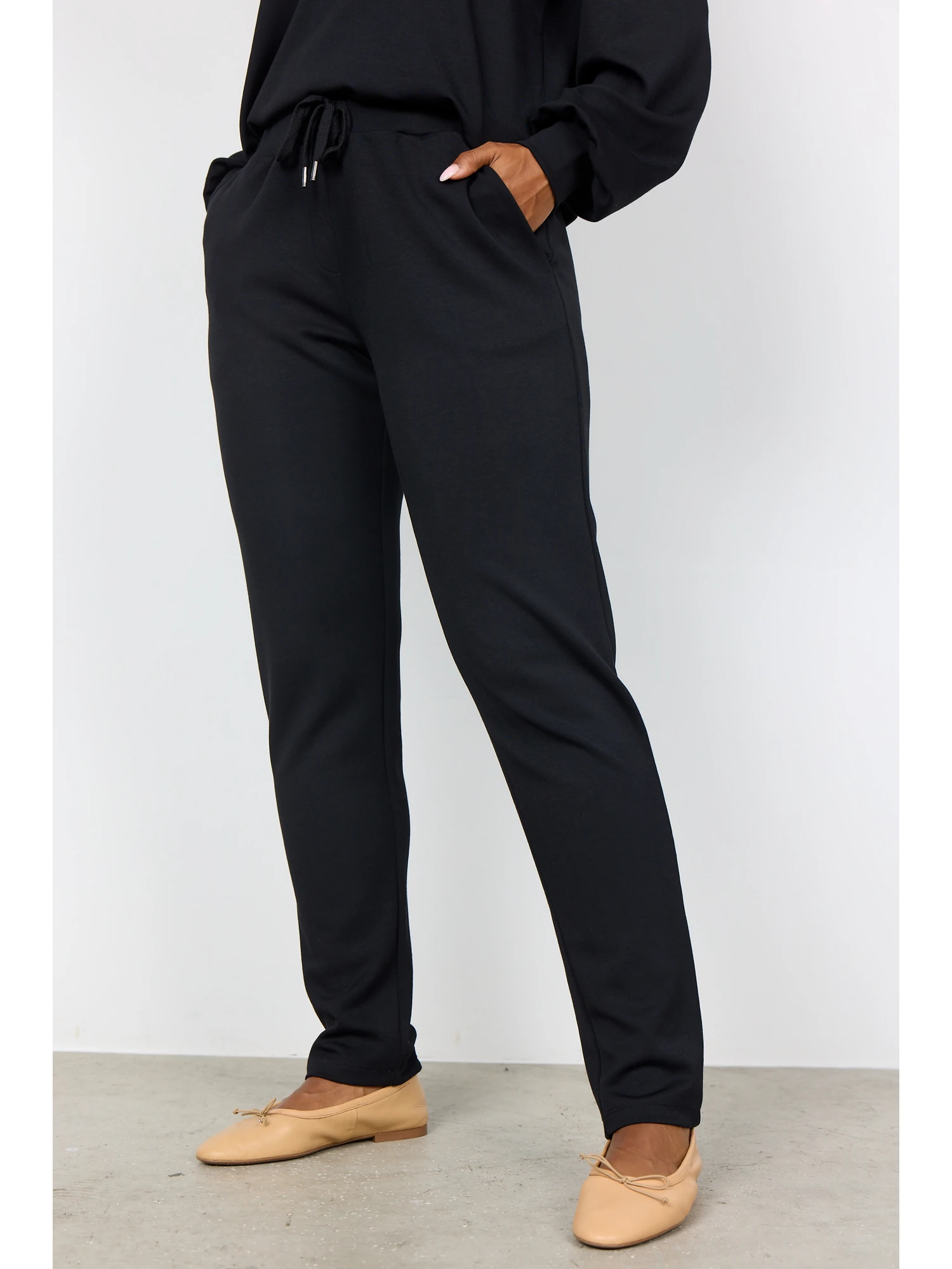 Bukserne har en justerbar talje, som gør dem nemme at tilpasse individuelt. Materialet føles blødt mod huden og følger kroppens bevægelser uden at stramme. SC-Banu 157 er velegnede til afslapning og hjemmebrug, hvor komfort er i fokus.