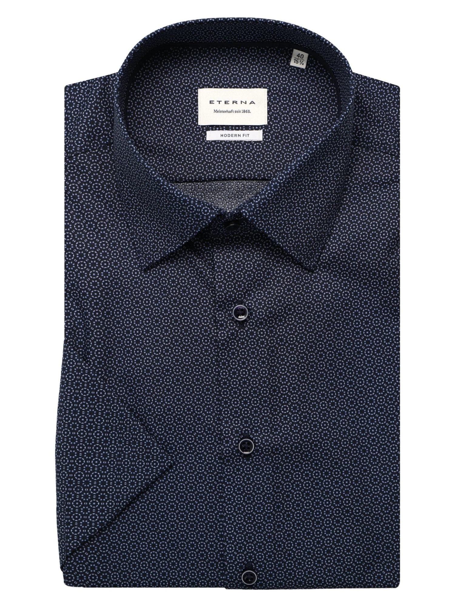 Denne Modern Fit SS Skjorte fra Eterna er en kortærmet herreskjorte fremstillet i 100% bomuld. Den fungerer som en enkel og alsidig basis, der kan bruges både på arbejde og i fritiden.