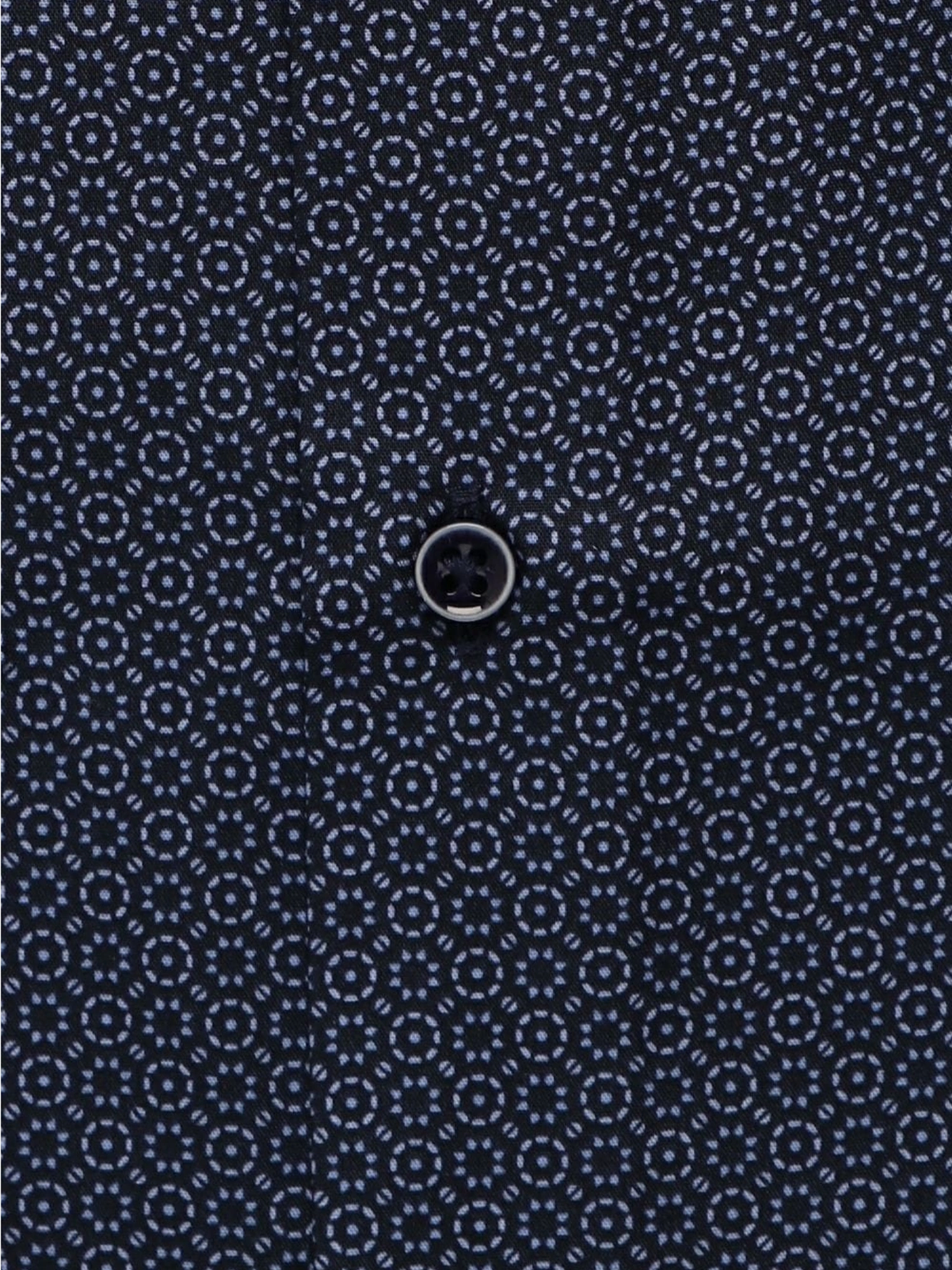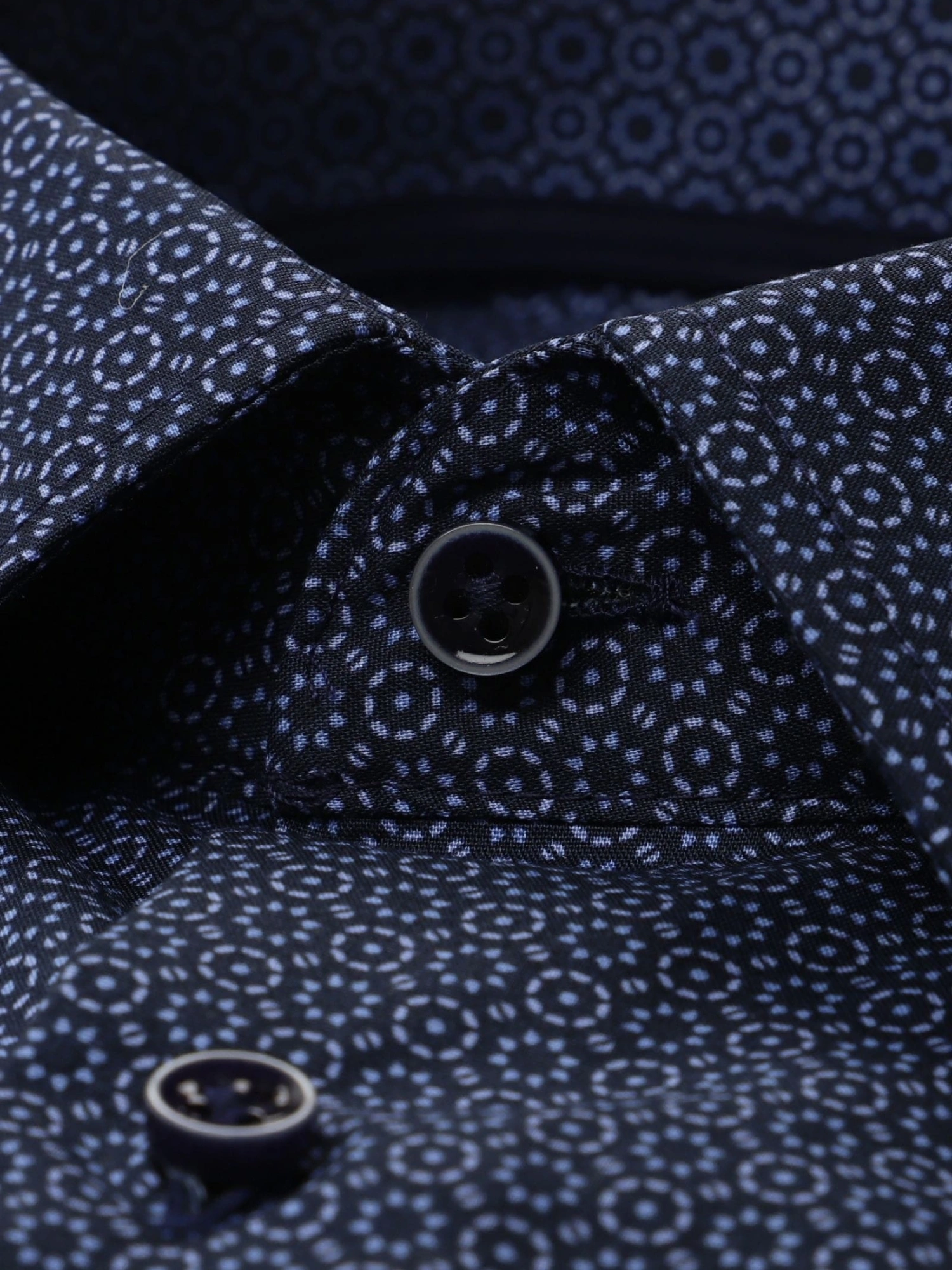 Modern fit er konstrueret med en let indsnævret form, som giver et mere markeret udtryk end regular fit. Skjorten har afbalanceret bredde over brystet og en gradvis tilpasning ved taljen, mens de korte ærmer er skåret med en ren afslutning uden overflødig vidde.