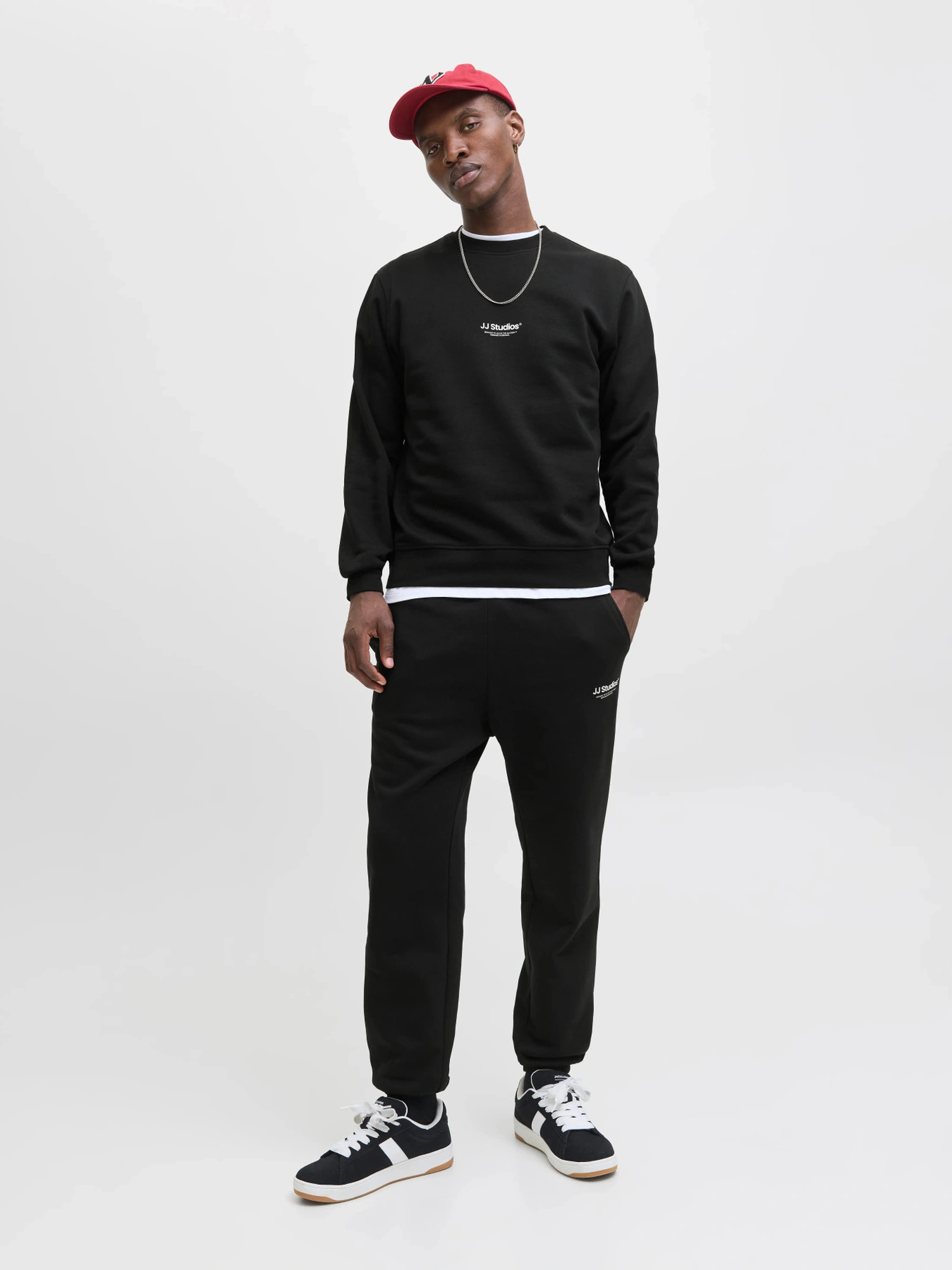 Denne JJESOHO SWEAT CREW NECK fra Jack & Jones er en sweatshirt i relaxed fit fremstillet i bomuldsblanding med genanvendt polyester. Med et lille JJ Studios print i hvid på brystet.